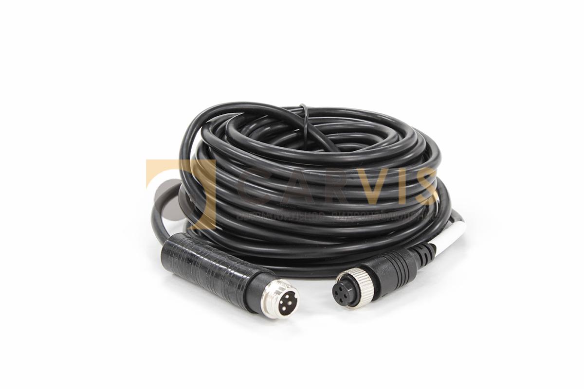 Позволяет соединить между собой автомобильный регистратор и камеру наблюдения. Длина кабеля 10 метров позволяет устанавливать видеонаблюдение не только в легковые автомобили, но и спецтранспорт. С одной стороны переходника авиационный штекер (папа), с другой — авиационный штекер (мама). Используется для коммутации отдаленных камер например: камера заднего вида на автобусе.