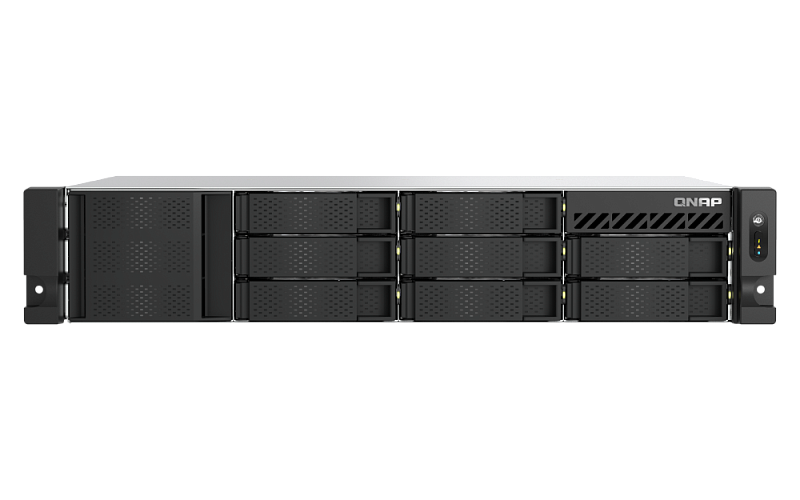TS-855eU-RP, сетевой накопитель малой глубины, разработанный компанией QNAP, идеально подходит для установки в компактные стойки, что делает его оптимальным решением для офисных и аудиовизуальных сред.