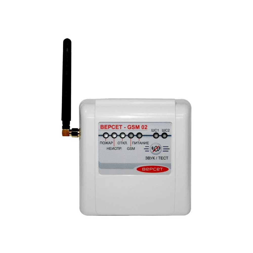 Контрольный прибор «Сибирский Арсенал» «Версет-GSM 02» рассчитан на два шлейфа сигнализации. Совместим с прибором мониторинга «Ветта-50 GSM». Оборудован тремя реле, выходами светового и звукового оповещения. Оповещает о тревоге и других событиях сигналами световых и звуковых оповещателей, SMS-сообщениями на номера пользователей, контактами реле.
