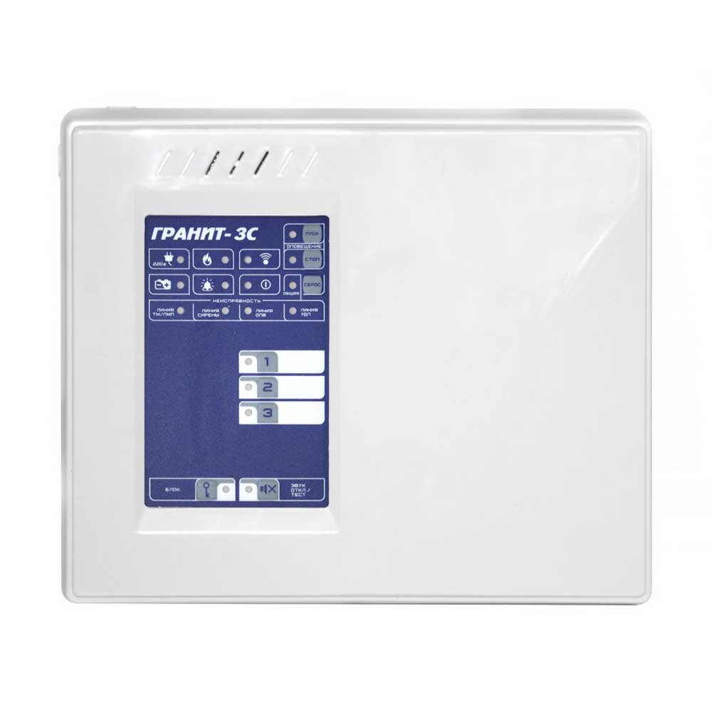 Контрольный прибор «Сибирский Арсенал» «Гранит-3C» рассчитан на три шлейфа сигнализации. Укомплектован тремя выходами типа «открытый коллектор» и одним типа «сухие контакты». Оповещает о тревоге и других событиях с помощью световых и звуковых оповещателей, табло «Выход». Поддерживает все алгоритмы работы (А, В и С) согласно свода правил СП 484.1311500.2020 «Системы противопожарной защиты. Системы пожарной сигнализации и автоматизация систем противопожарной защиты. Нормы и правила проектирования» (01.03.2021 г). Оборудован входами для подключения внешнего источника питания, аккумуляторной батареи, дополнительного порта Touch Memory, считывателя «Портал», трех шлейфов охранной или пожарной сигнализации, устройства дистанционного пуска, коммуникатора (GE, Wi-Fi), microUSB для подключения к ПК, тремя выходами линий реле, выходами питания, сирены, табло, выходами типа открытый коллектор, разъемом соединения платы контроллера и платы источника питания, перемычками настройки, сброса настроек, установки пароля, обновления прошивки, бипером, светодиодными индикаторами питания, состояния, событий, связи.