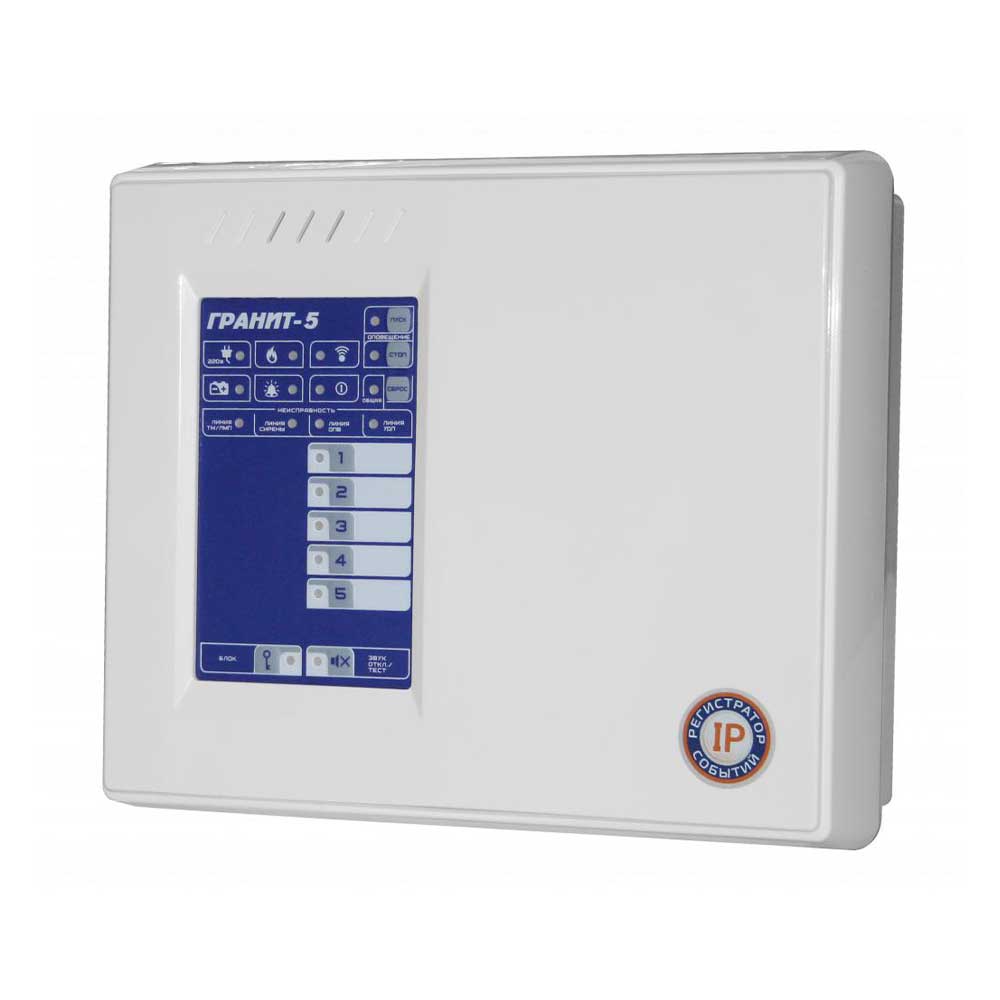 Контрольный прибор «Сибирский Арсенал» «Гранит-5 с IP-регистратором событий» рассчитан на пять шлейфов сигнализации. Укомплектован тремя выходами типа «открытый коллектор» и одним типа «сухие контакты». Оповещает о тревоге и других событиях с помощью световых и звуковых оповещателей, табло «Выход». Поддерживает все алгоритмы работы (А, В и С) согласно свода правил СП 484.1311500.2020 «Системы противопожарной защиты. Системы пожарной сигнализации и автоматизация систем противопожарной защиты. Нормы и правила проектирования» (01.03.2021 г).