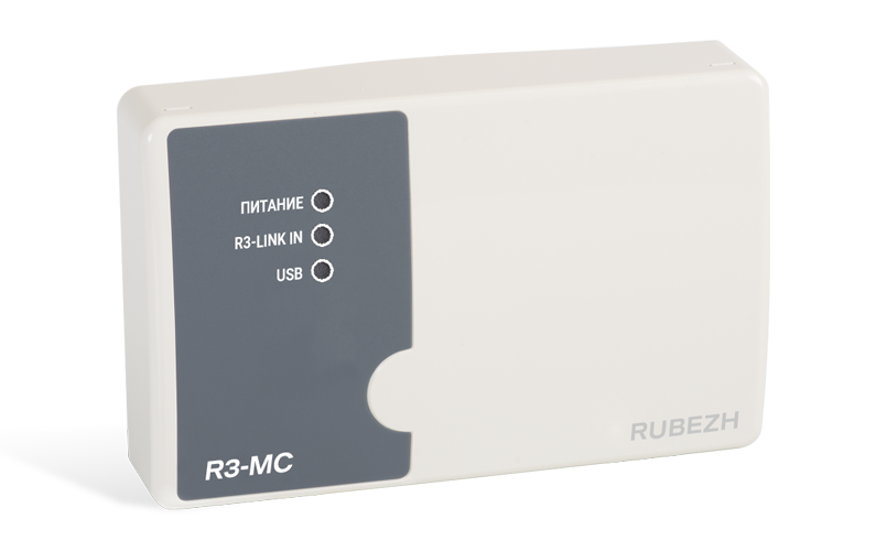 Основная функция модуля R3-МС - связь приборов интерфейса R3-Link с компьютером: подключение объединенных по интерфейсу R3-Link адресных приемно-контрольных приборов и устройств к USB порту компьютера для конфигурирования всей системы, вывода на мониторинг и управления всеми элементами системы R3-Рубеж.