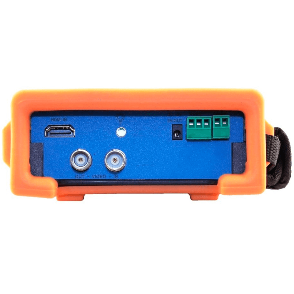 Интерфейсы: 3?RJ-45, HDMI вход и выход, 2?BNC, RS-485, аудио-вход-выход (jack 3.5 мм), разъемы DC, USB-выход (5 В, 2A). Предусмотрен слот MicroSD (карта памяти на 8 Гбайт в комплекте). Питание — БП DC 12 В, встроенная литиевая аккумуляторная батарея 7.4 В, емкостью 5000 мА·ч. Продолжительность автономной работы батареи — до 10 ч. Интервал рабочих температур — 0 ?С… +40 ?С. Размеры — 215?53?127 мм.