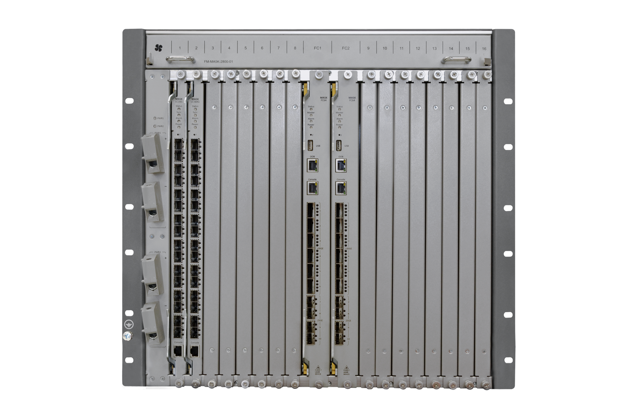 Узел доступа выполнен в стандартном 19" евроконструктиве высотой 11U. Корпус содержит два слота для установки управляющих модулей коммутатора MA5K-FC64 и шестнадцать слотов для установки линейных модулей LC (GPON/XGS-PON).