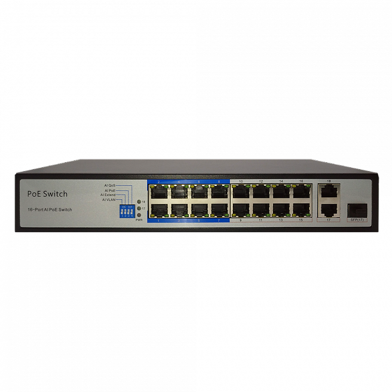 | Количество портов | 16 РоЕ (1-8 каналы - 10/100 Mb/c9-16 каналы - 100 Mb/c) 2 UpLink (1Gb/c) 1 SFP(1Gb/c) |
