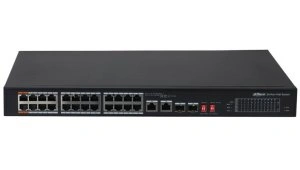Порты: 24 RJ45 10/100Мбит/с (PoE/PoE+/Hi-PoE), 2 комбинированных SFP/RJ45 10/100/1000Мбит/с (uplink); мощность PoE: порты 1~2 до 60Вт, порты 3~24 до 30Вт, суммарно до 240Вт; питание: 100~240В(AC)