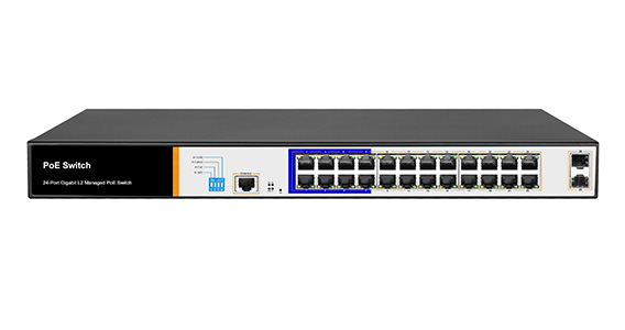 24 портовый гигабитный РОЕ коммутатор L2 с 2 SFP