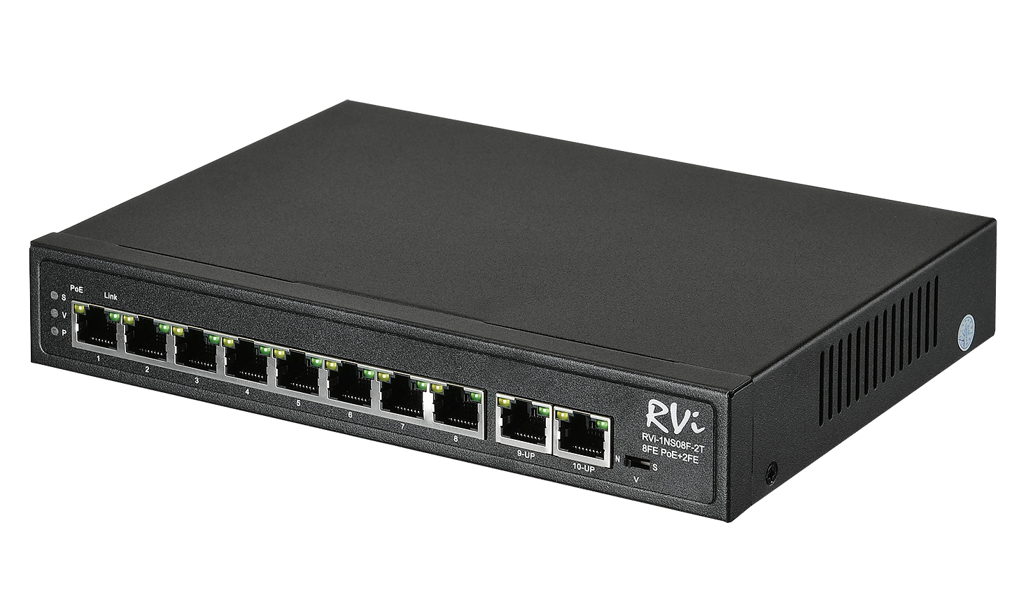 Сетевой коммутатор; Общее количество портов: 10 , Количество портов, поддерживающих стандарт PoE: 8шт., 2 порта 10Base-T/100Base-TX/1000Base-T; Суммарная мощность потребителей: 120 Вт; Таблица МАС адресов: 2К; Габаритные размеры: 210(Д)х130(Ш)х32(В) мм; Вес: 1200 г;