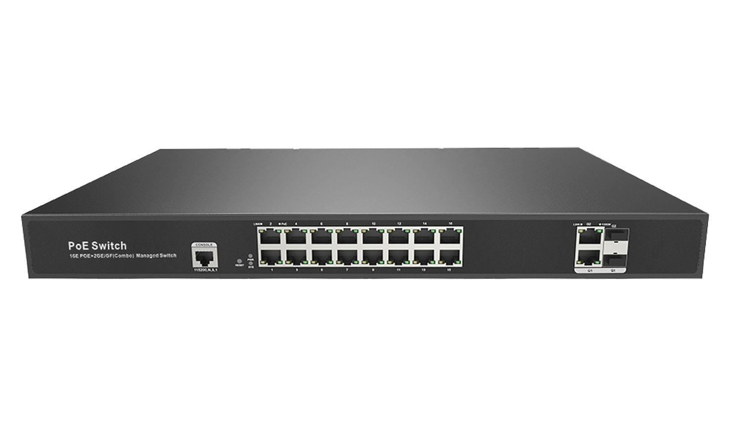 Общее количество портов: 18; Количество портов PoE: 16