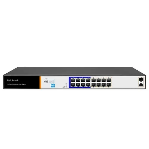 Данное устройство оснащено функцией AI-PoE (watchdog), обеспечивающей контроль питания устройств. Коммутатор имеет 24 портов RJ45 со скоростью передачи данных 10/100/1000 Мбит/с с поддержкой PoE, а также два порта SFP с такой же скоростью передачи. Устройство поддерживает стандарты PoE IEEE 802.3af и IEEE 802.3at. Мощность каждого PoE-порта составляет до 30 Вт, а максимальное расстояние до потребителя PoE достигает 250 метров.