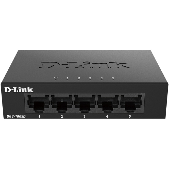 Коммутатор D-Link Switch DGS-1005D/J2A представляет собой устройство с пятью портами, обеспечивающими скорость передачи данных 10/100/1000 Мбит/с.