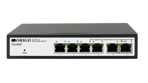 Origo OS2406P/60W представляет собой шестипортовый гигабитный управляемый коммутатор второго уровня (L2), оснащенный четырьмя портами PoE+ с поддержкой стандартов IEEE 802.3af/at.