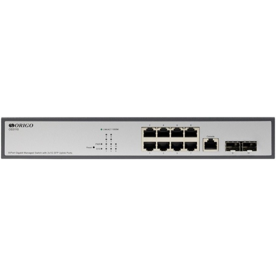 ORIGO OS3110 - это управляемый коммутатор второго уровня (L2) с восемью гигабитными портами RJ-45 и двумя SFP-портами, предназначенными для подключения к оптическим сетям. Данная модель рекомендована для использования в компаниях малого, среднего и крупного бизнеса, которым требуется современное гигабитное решение, обладающее функциями базовой маршрутизации, обеспечения безопасности, контроля доступа, отказоустойчивости, качества обслуживания и сегментации сети с помощью VLAN.
