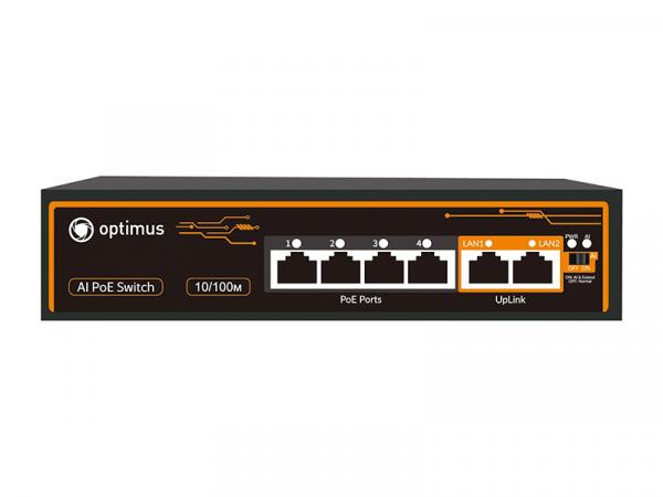 Коммутатор неуправляемый PoE Optimus U1I-4F/2F — купить для систем видеонаблюдения