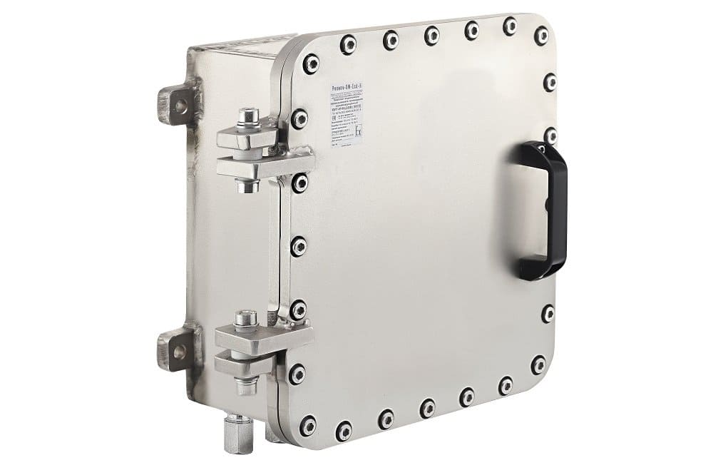 Корпус изготовлен из нержавеющей стали 12Х18Н10Т, защищен от влаги и пыли по стандарту IP66/68, от взрыва — 1Ex d IIC Т5/Т6 Gb (кроме ацетилена), Ex tb IIIC T 85 °C… T 100 °C Db, РВ Ex d I Mb. По периметру крышки проложен уплотнитель, на внутренних поверхностях — фольгированный утеплитель. Предусмотрены холодный старт, термостат, предохранитель, защита (включая нагрузку) от высоковольтных (до 6 кВ) импульсов (грозозащита), семь отверстий с резьбой М20?1.5 (для ввода кабелей). Питание — 100 ~ 240 В AC. Размер — 425?340?185 мм. Вес — 25 кг.