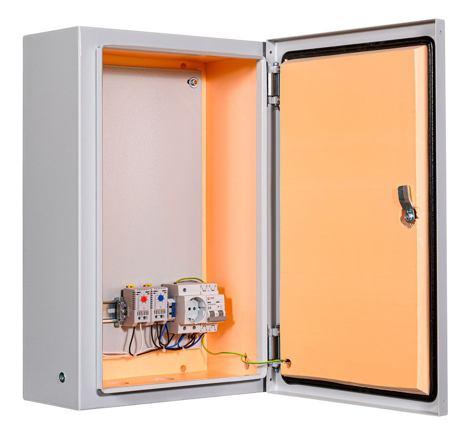 Данный шкаф изготовлен из стали и обладает степенью защиты IP66, что гарантирует его надежную работу в уличных условиях. Шкаф оснащен предстартом и системой обогрева. Цвет исполнения - серый.