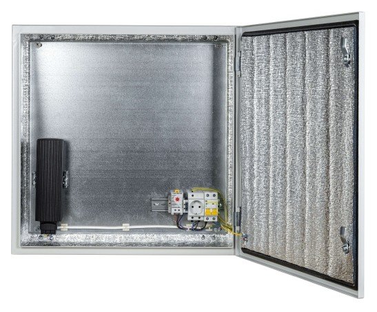 Встроенная система терморегулирования: Оснащенный термореле и нагревателем мощностью 150 Вт, этот термошкаф поддерживает оптимальную температуру внутри, предотвращая перегрев или переохлаждение оборудования. Это критически важно для обеспечения стабильной и надежной работы электроники в широком диапазоне температур.