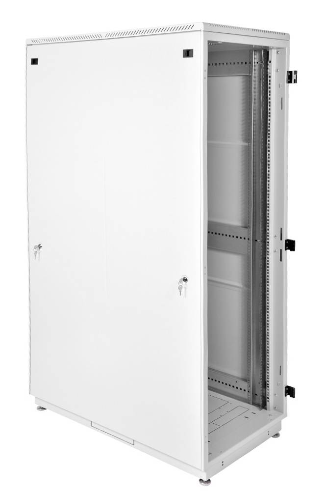 Шкаф поставляется с четырьмя винтовыми опорами, компенсирующими неровности поверхности для установки. Размер — 600×800×2250 мм, вес — 115.11 кг.