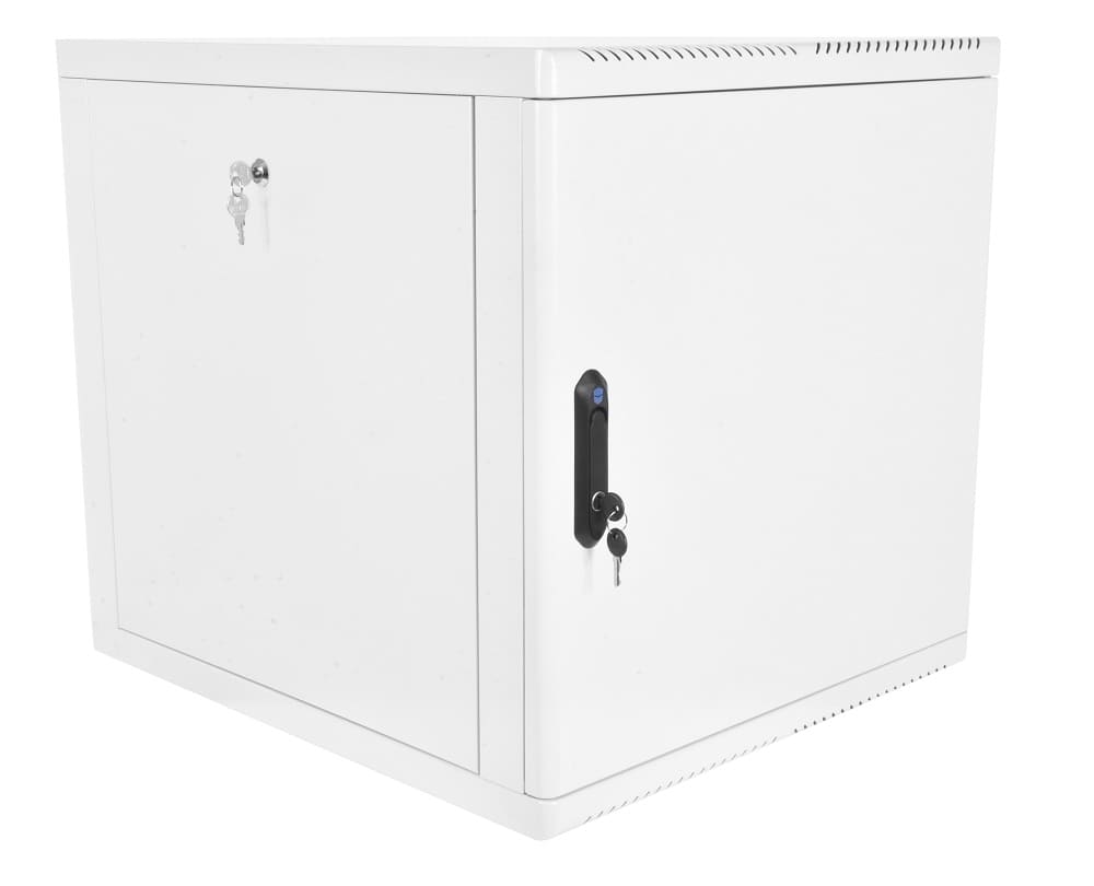 Предусмотрено по кабельному вводу 94?40 мм в верхней и нижней части корпуса; вводы заглушены. Листовые детали окрашены порошковой краской светло-серого (RAL 7035) цвета, направляющие оцинкованы. Из-за навесного монтажа в стандартную комплектацию не включена задняя стенка, но ее можно купить в процессе заказа. Шкаф изготовлен из стали толщиной до 2 мм, поставляется разобранным — в плоской упаковке, удобной для транспортировки. Размер — 600?650?746 мм, вес — 27.36 кг.