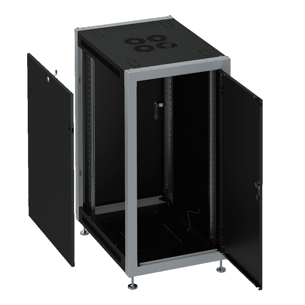 Конструкция шкафа представляет собой разборную сборку из четырёх стоек, основания, крыши, двух боковых стенок, двух цельнометаллических дверей, двух юнитовых монтажных профилей и швеллеров для усиления жёсткости.