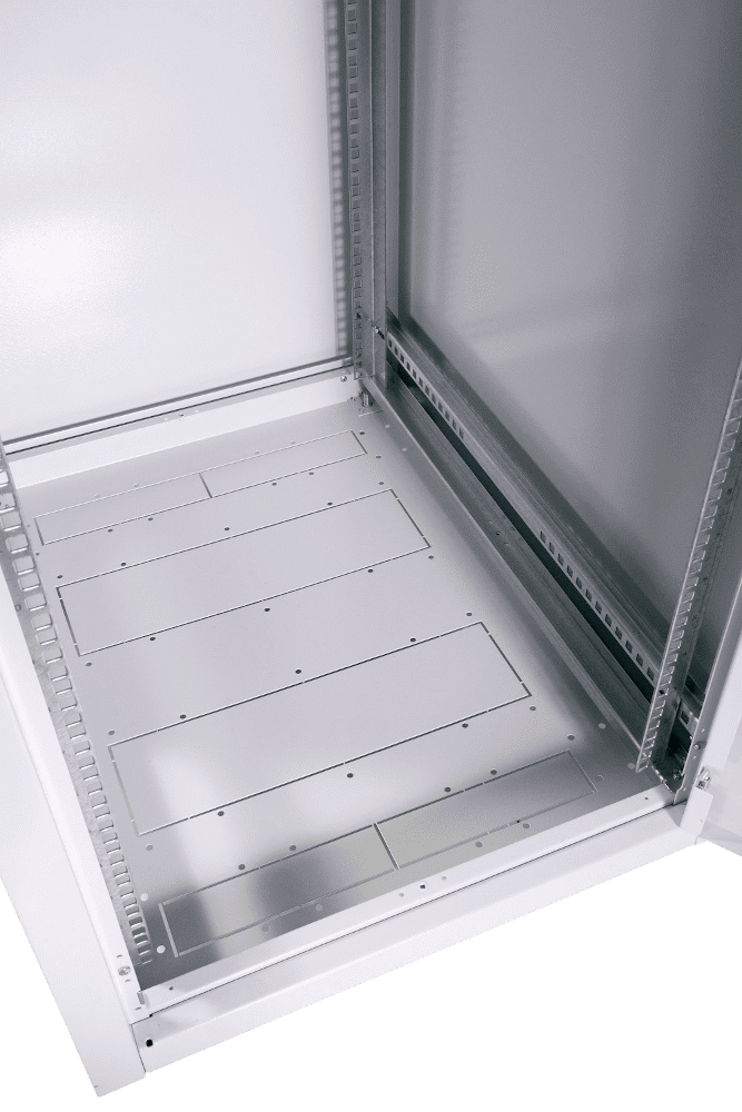 Шкаф ЦМО ШТК-Э-42.6.6-44АА-9005 спроектирован в соответствии с стандартом несущих конструкций 482.6 мм (19") по ГОСТ 28601-90 (МЭК 297). Его каркасная сборная конструкция состоит из двух опорных рам, основания с закрытым прямоугольным отверстием для щеточных кабельных вводов (КВ-Щ-55.420А или двух КВ-Щ-55.210А), крыши с закрытыми прямоугольными отверстиями для вентиляционного блока и щеточных кабельных вводов, передней и задней перфорированных дверей, а также двух боковых панелей, оснащенных усиленными точечными замками. Четыре вертикальных юнитовых монтажных профиля обеспечивают надежную фиксацию оборудования. Съемные боковые панели и две двери предоставляют доступ к оборудованию с четырех сторон.