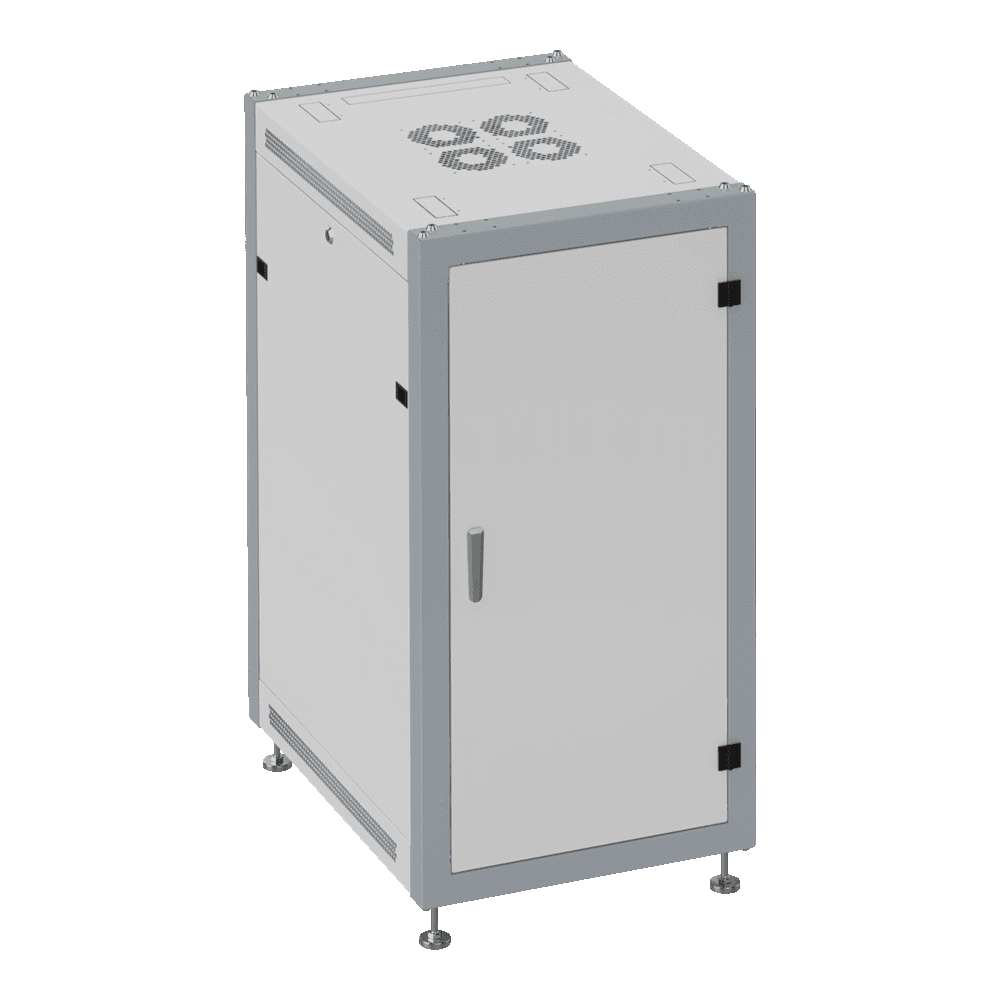 Высокая грузоподъемность: Шкаф выдерживает статическую распределенную весовую нагрузку до 800 кг, что позволяет размещать тяжелое серверное и сетевое оборудование без опасений.