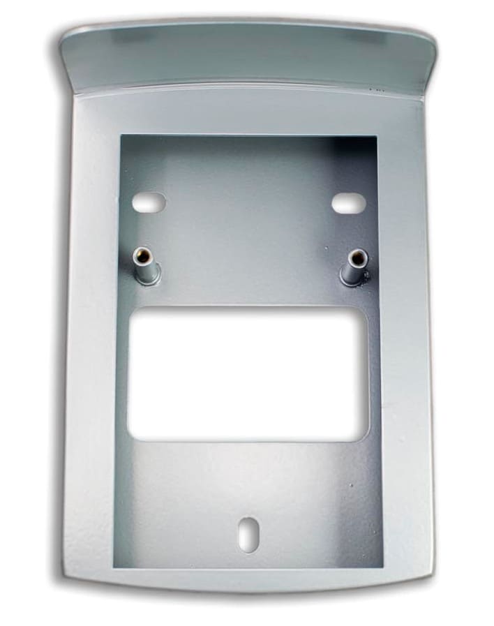 Металлический кожух True IP TI-Vizor 2600WD Silver для накладной установки вызывной панели TI-2600WD Silver укомплектован козырьком для защиты от солнечных лучей и осадков. Решен в серебряном цвете. Для ввода кабеля вызывной панели предусмотрены отверстия. Размер — 105×142×80 мм. Вес — 200 г.