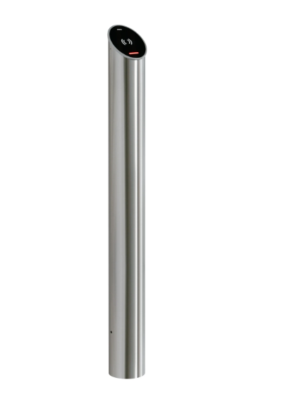 Корпус стойки изготовлен из нержавеющей стали с радиопрозрачной стеклянной крышкой. В крышке интегрированы плата считывателя, сканер штрихкода и динамическая индикация режимов работы контроллеров систем контроля и управления доступом (СКУД). Успешное считывание идентификатора подтверждается звуковым сигналом, а сканер штрихкода оснащен встроенной подсветкой.