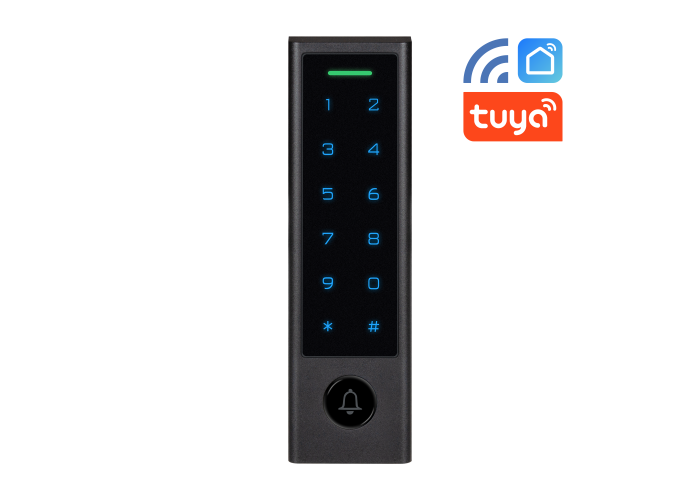 Контроллер Novicam SE310KW WIFI представляет собой программируемое устройство с интегрированным считывателем RFID-меток Em-Marin и сенсорной клавиатурой с интеллектуальной синей подсветкой. Данный контроллер предназначен для реализации современных систем контроля доступа, управляемых удаленно через мобильное приложение Smart Life | Tuya Smart.