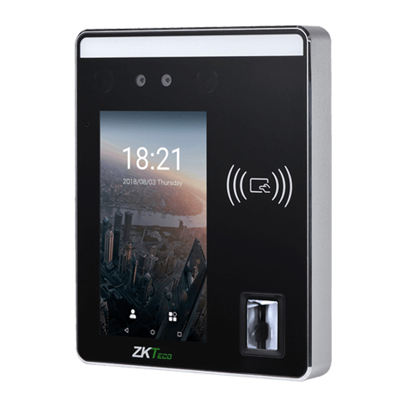 Мультибиометрический терминал: распознавания лиц, считыватель отпечатка пальца, считыватель RFID. Дисплей 5" TFT. Сдвоенная камера 2MP. Память 2ГБ RAM / 16ГБ ROM. Память шаблонов лиц 6000, память шаблонов отпечатка пальца 10 000, память RFID карт 10 000. Память журнал событий 200000. Интерфейсы: TCP/IP, 2хUSB, Wi-Fi (опция), RS232, RS485 для внешних считывателей, Wiegand вход/выход. Входы\выходы: Интерфейсы: дверной замок, дверной датчик, звонок, кнопка выхода, тревога, AUX вход.