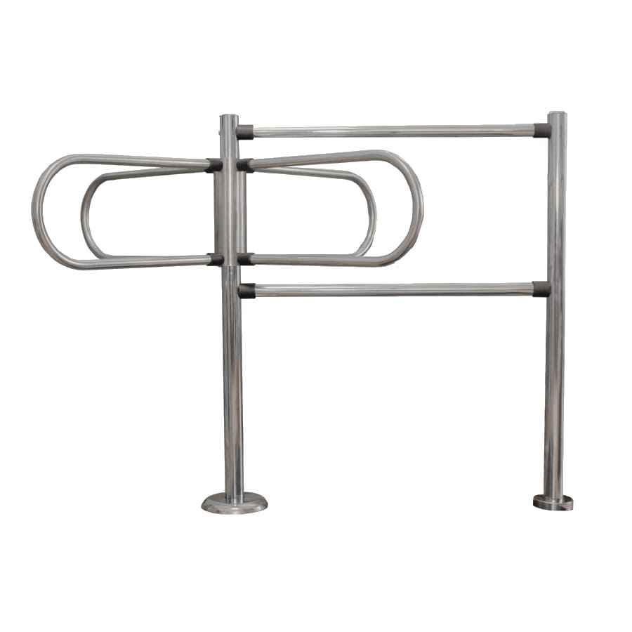 Неуправляемый 4-лопастный роторный полуростовой турникет 3V ТРП-515 работает в одном направлении: вращение створок возможно только в одну сторону за счет механизма с поворотной муфтой для блокировки обратного хода. Для ограничения доступа с противоположной стороны турникета предусмотрены два преграждающих поручня.