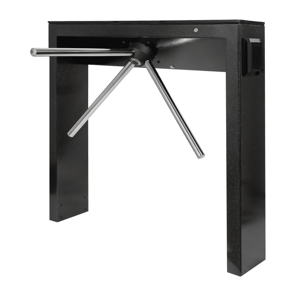 Электромеханический тумбовый турникет-трипод 3V Model T сохраняет статус (закрыт, открыт) при обесточивании. Планки «стандарт» и «антипаника» в комплект поставки не включены (отдельный заказ).