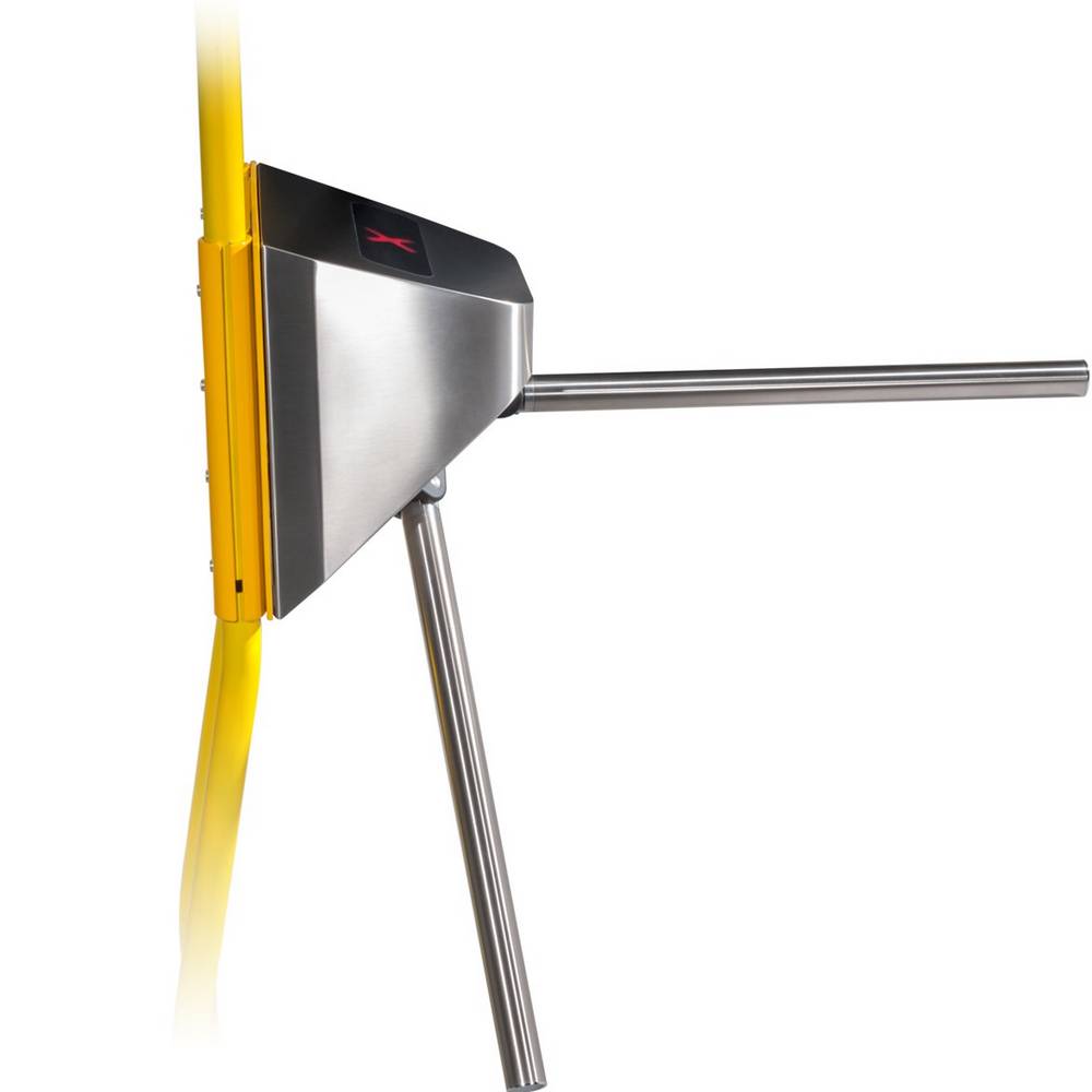 Управлять турникетом можно с пульта ДУ, устройства радиоуправления (доп. оборудование), с контроллера СКУД. Предусмотрена индикация статуса доступа, разблокировка прохода по аварийному сигналу и при отключении питания — планки открывают свободный проход, принимая вертикальное положение под действием собственного веса. Обратно в рабочее положение планки устанавливают вручную.