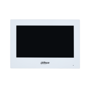 Данный IP-видеодомофон с 7-дюймовым сенсорным экраном высокого разрешения (1024x600) выполнен в белом цвете. Модель оснащена шестью входами и одним выходом для подключения тревожных датчиков, а также портом LAN для сетевой интеграции. Устройство поддерживает просмотр видео с IP-камер. Питание осуществляется от источника постоянного тока 12В или по технологии PoE (Power over Ethernet). Габариты домофона составляют 190 мм × 135 мм × 26 мм, установка производится на стену.