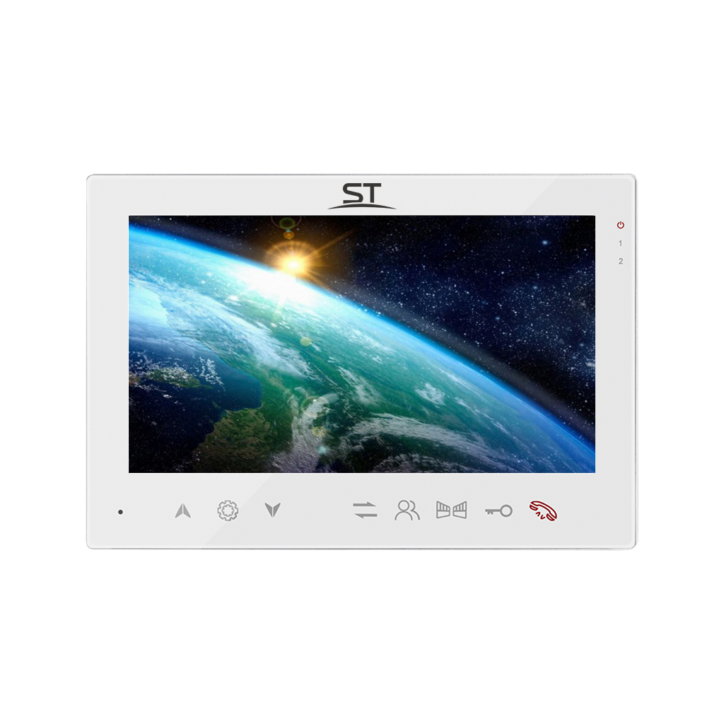 ST-M208/7 (S/SD/WF) БЕЛЫЙ, Дисплей: 7", Разрешение: 1024*600, Поддерживаемые стандарты видео: CVBS/TVI/CVI/AHD(720Р/1080P) , Количество подключаемых панелей: 2, Количество подключаемых камер: 2, Количество подключаемых мониторов: 6, Интерком: Да, Режим «не беспокоить»: Да, Запись фото/видео: Да, Слот под SD карту: Да (до 128 Гб(класс 10)), Количество мелодий звонка : 10, Автоответчик: Да(с SD карт.), Функция фоторамки: Да(с SD карт.), Возможности подключения: До 2х вызывных панелей, до 2х видеокамер, до 6и мониторов*, Мобильное приложение: Tuya Smart, Напряжение питания: АС 100-240В (встроенный БП 12V1A), Способ монтажа : Накладной (монтажная пластина), Рабочая температура : -10°С...+60°С, Мах. коммутируемые ток и напряжение для замка (ворота): 30V/1A, Пластик, 184х126х22,5мм