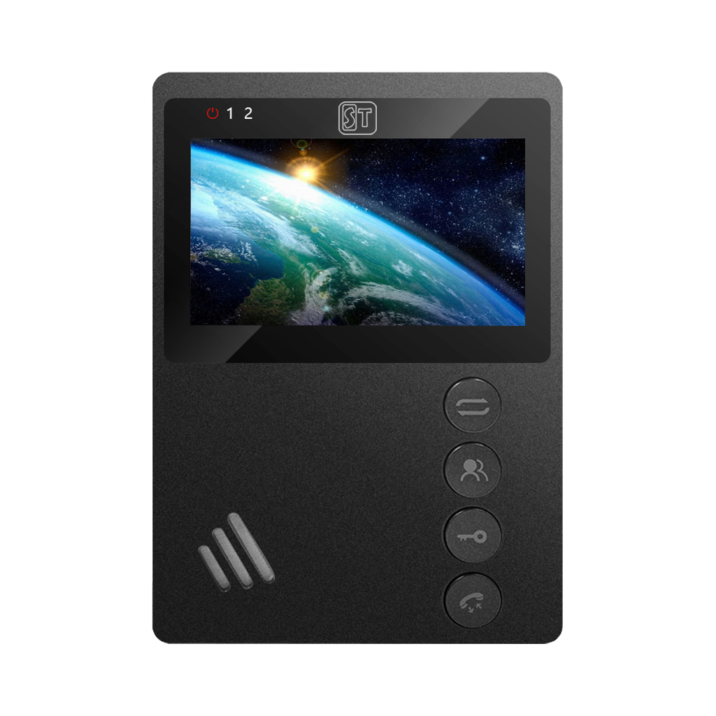 ST-M101/4 (М) ЧЕРНЫЙ, Дисплей: 4", Разрешение: 480*272, Поддерживаемые стандарты видео: CVBS, Интерком: Дуплекс, Режим «не беспокоить»: Нет, Слот под SD карту: Нет, Количество мелодий звонка : 1, Функция фоторамки: Нет, Возможности подключения: До 2х вызывных панелей,до 4х мониторов, Напряжение питания: АС 100-240В (встроенный БП), Способ монтажа : Накладной (монтажная пластина), Рабочая температура : -10°С...+60°С, Пластик, 170х117х17мм
