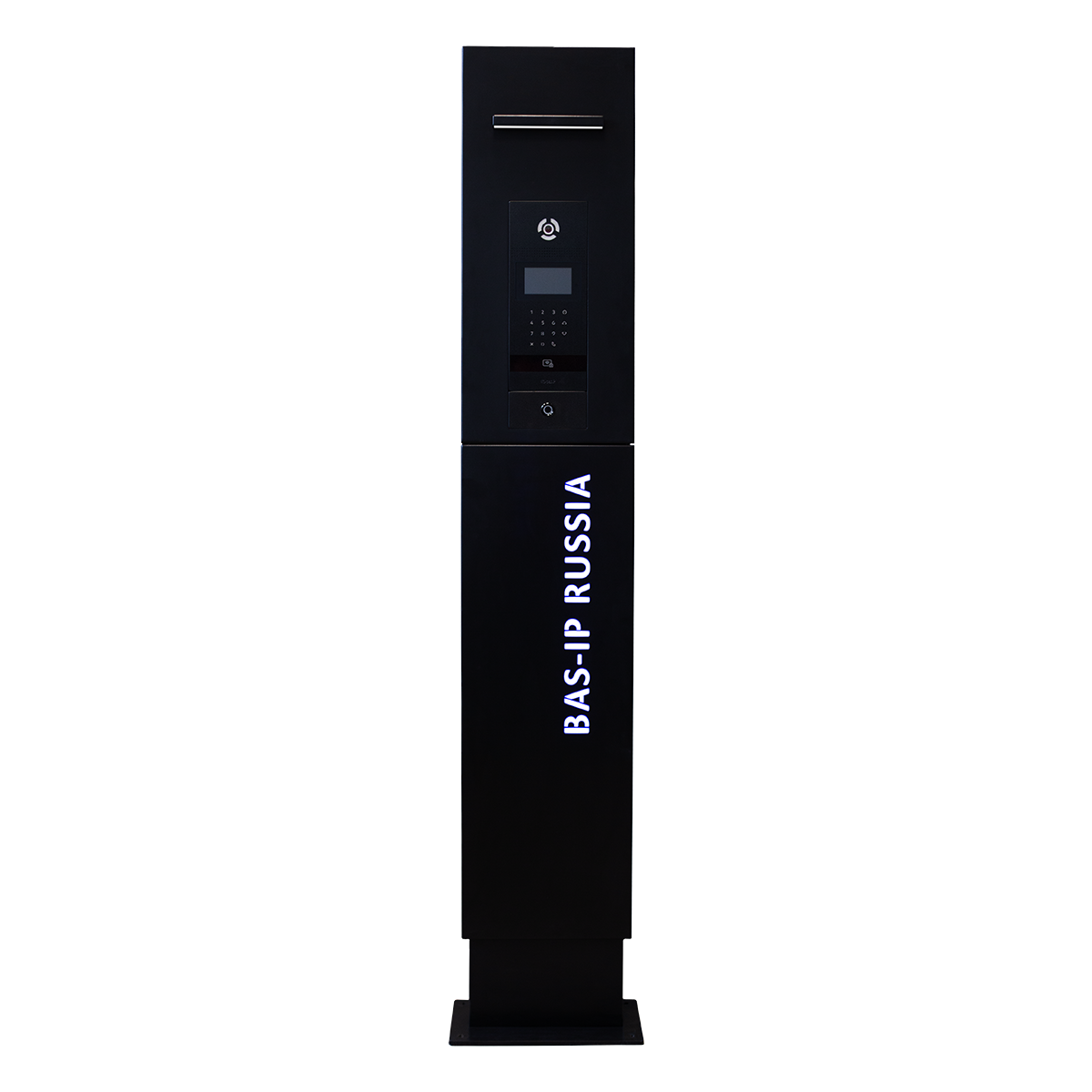 Стойка с подготовкой для установки вызывной многоабонентской панели BAS-IP AA-12FB, надпись с подсветкой RGB, сталь СТ3 окрашенная по RAL (цвет по согласованию).