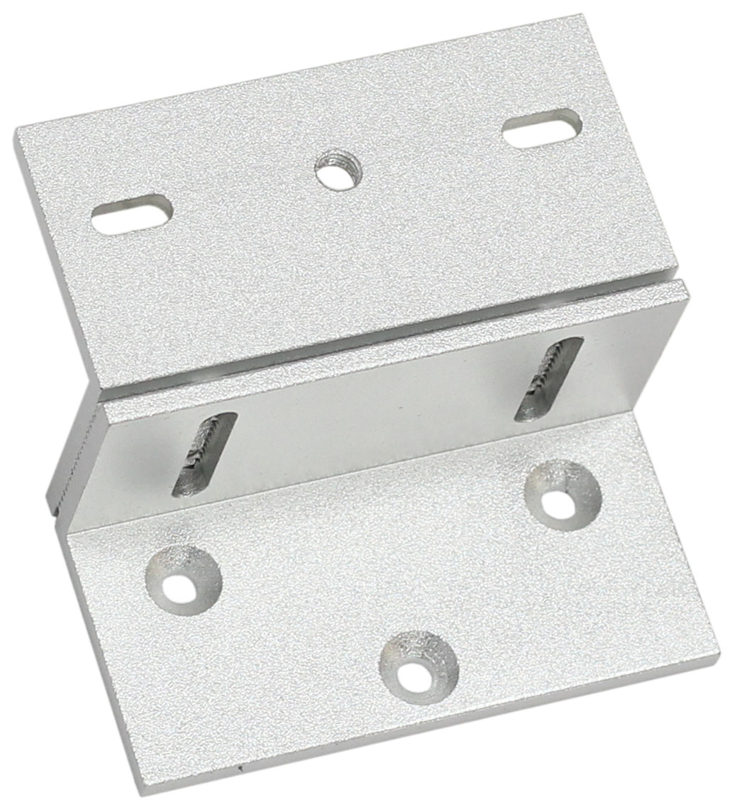 Кронштейн Z-образной формы из алюминия предназначен для фиксации якоря электромагнитного замка на дверях, открывающихся вовнутрь.