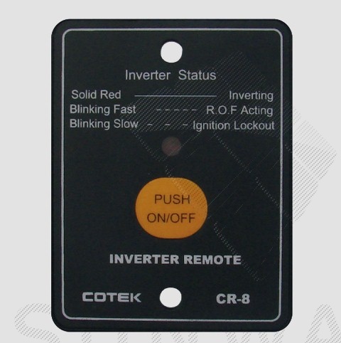 Продвинутая дистанционная панель управления CR-8 совместима со всеми моделями инверторов COTEK серии SK и ST на 12 и 24 В. На дистанционной панели имеется светодиодная индикация и кнопка включения и выключения инвертора.