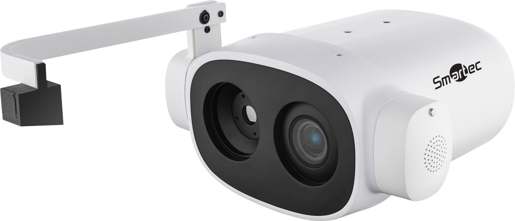 Видеокомплекс STX-IP23TM, представляющий собой интегрированную конструкцию тепловизора с калибровочным элементом (черным телом), предназначен для бесконтактного измерения температуры тела человека в сочетании с функцией распознавания лиц.