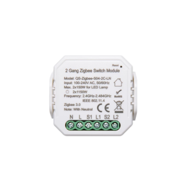 Двухканальный релейный ZigBee модуль Akubela QS-Zigbee-S04-2C-LN