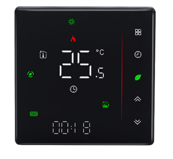 Стильный и лаконичный дизайн панели позволяет легко установить желаемую температуру в помещении как непосредственно на устройстве, так и посредством удобного мобильного приложения. Яркий и информативный дисплей в сочетании с интуитивно понятными сенсорными кнопками гарантирует комфорт и простоту использования.